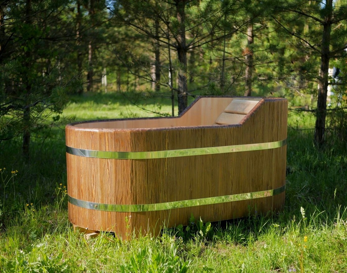 Деревянная ванна из кедра Деревянная ванна из кедра создаст уютную атмосферу в вашей ванной комнате, бане или спа-салоне. При взаимодействии кедра с водой активируются эфирные масла и фитонциды, что делает принятие ванны не только приятным, но и полезным. Ванна оснащена подспинником, поэтому во время процедур можно принять удобное положение. При правильном уходе срок службы изделия более 20 лет.