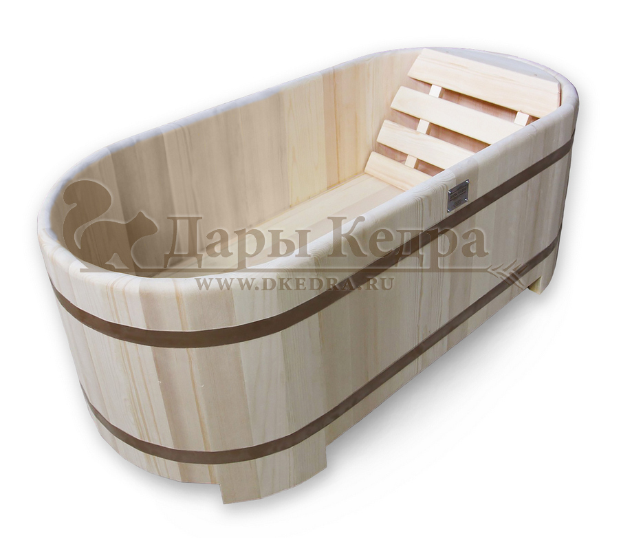Деревянная ванна из кедра Деревянная ванна из кедра создаст уютную атмосферу в вашей ванной комнате, бане или спа-салоне. При взаимодействии кедра с водой активируются эфирные масла и фитонциды, что делает принятие ванны не только приятным, но и полезным. Ванна оснащена подспинником, поэтому во время процедур можно принять удобное положение. При правильном уходе срок службы изделия более 20 лет.