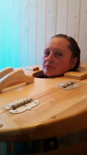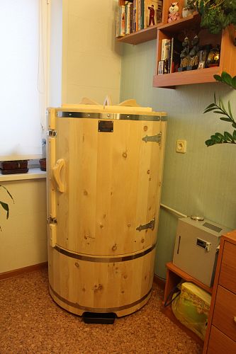 Хорошая бочка: примерно через 7 минут уже жарко в ней. Мне хватает вполне 10-15 минут, чтобы хорошо пропотеть, кожа стала более гладкой, упругой после процедур в бочке. Я довольна!
